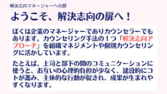 解決志向はウチ側からソト側へあふれるように流れていくんですね。ぼくらの組織を解決志向で運営すると、周囲の可能性を伸ばすことに一役買うことにつながるんですね。