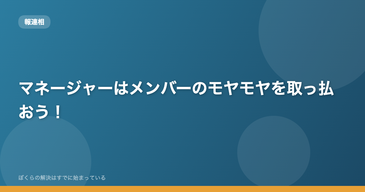 ぼくのグループは毎日朝会をやって、問題があれば話してもらい、荷下ろししてもらいます。